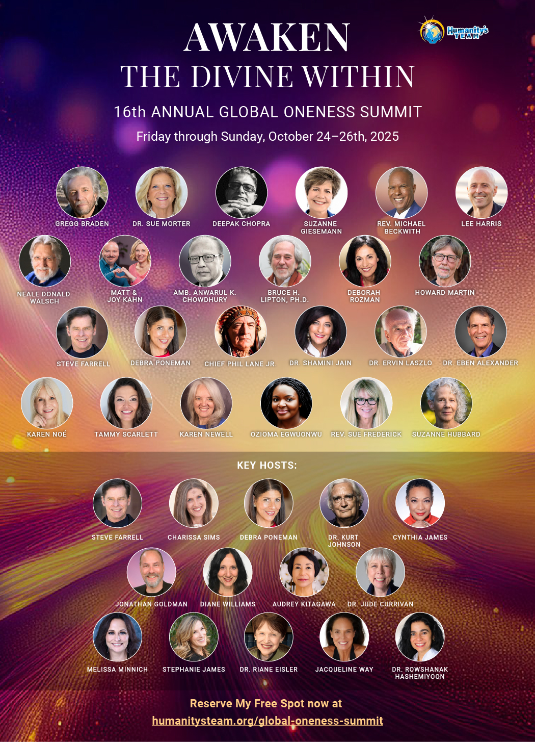 Join Humanity’s Team for the 16th Annual Global Oneness Summit, Oct 24–26, 2025—Awaken the Divine Within at this free, 3-day online conscious living event.