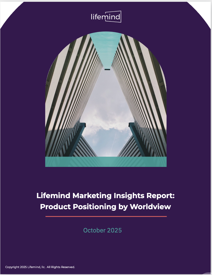 Cover of Lifemind’s research report, Product Positioning by Worldview, exploring how liberal and conservative values influence product and message preference in retail marketing.