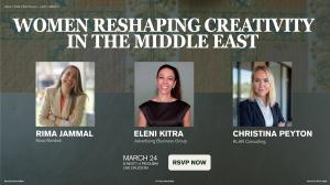 Open to a global audience, the virtual event offers a timely look at how the Middle East’s creative landscape is evolving and how women leaders are helping drive the region’s next wave of innovation.